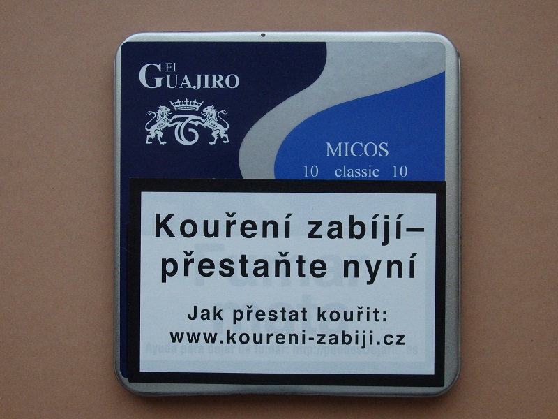 Španělské doutníčky El Guajiro Micos jsou střední síly a díky praktické plechové krabičce je můžete mít neustále u sebe. Micos Classic mají přírodní aroma.