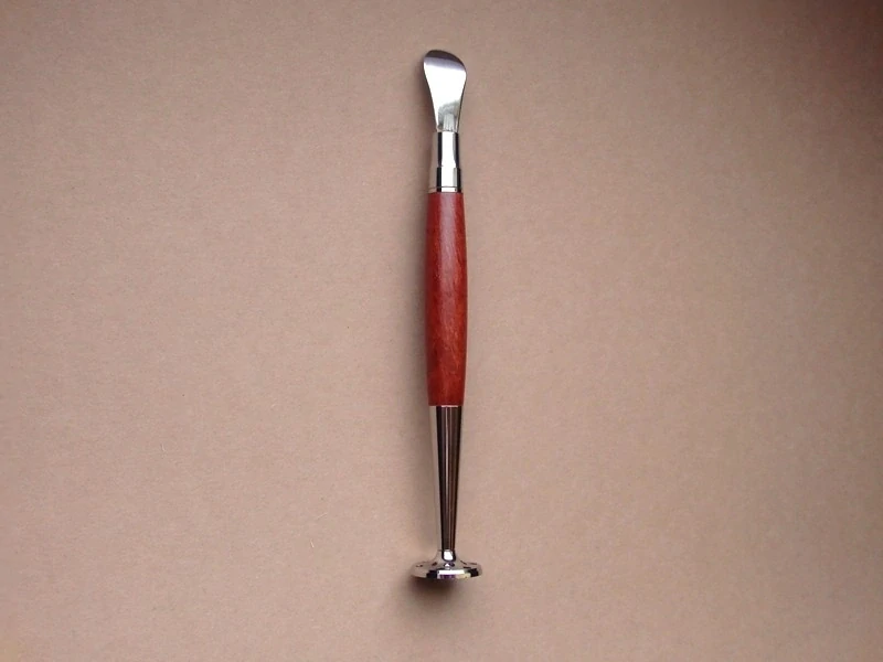 Dýmkové dusátko z exotického dřeva má výšku 119 mm. Dusátko je opatřené jehlou na čištění kanálku dýmky.