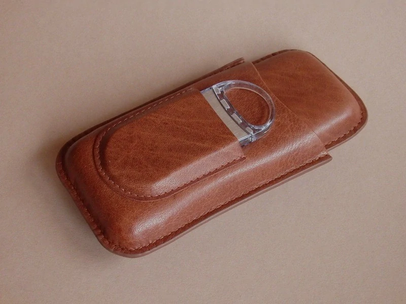 Kožené pouzdro Chacom na 2 doutníky robusto. Součástí pouzdra je plastový ořezávač doutníků, textilní sáček a papírová krabička.