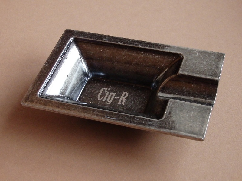 Kovový doutníkový popelník na jeden doutník má gumové nožičky a rozměr 111 x 75 x 22 mm.