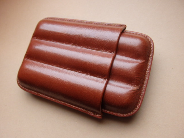Pouzdro na tři doutníky (Etue). Pouzdro na doutníky je dlouhé 140mm, průměr 21mm. Doutníkové pouzdro je kožené. celý popis